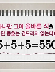TV5 문제적남자 뇌풀기문제 같이풀어봐요 문제적 남자 뇌풀기문제입니다. 티비를 보면서 그냥 멍하니 보고 있으면 왠지 눈치보이지만 문제적남자에서 뇌풀기문제를 보면은 왠지 공부하고 있는 것 같아 눈치를 안보고 당당하게 보게 됩니다. 여러분은 어떠신가요.... ㅋㅋ 문제나갑니다. 첫번째 문제는 다음과 같습니다. 문제1 : 직선을 하나만 그어 올바른 식을 만들어라.(단 등호는 건드리지 않는다.) 5+5+5 =550 처음에는 등호에다가 / 이렇게 하면 될 줄 알았는데.. 등호를 건드리지 못하게 하니깐 머리에 쥐가 나더라고요.. 여러분은 푸셨나요. 바로 정답을 가르쳐 드리면 안되니 .. 밑에 다가 정답을 만들도록 하겠습니다. 문제2 : 보기와 같은 규칙을 적용시키면 문제의 결과 값은 무엇이 될까? 보기 > 9981+1601=2957 문제.> 1080+91.. 2017. 6. 26. 이전 1 2 다음